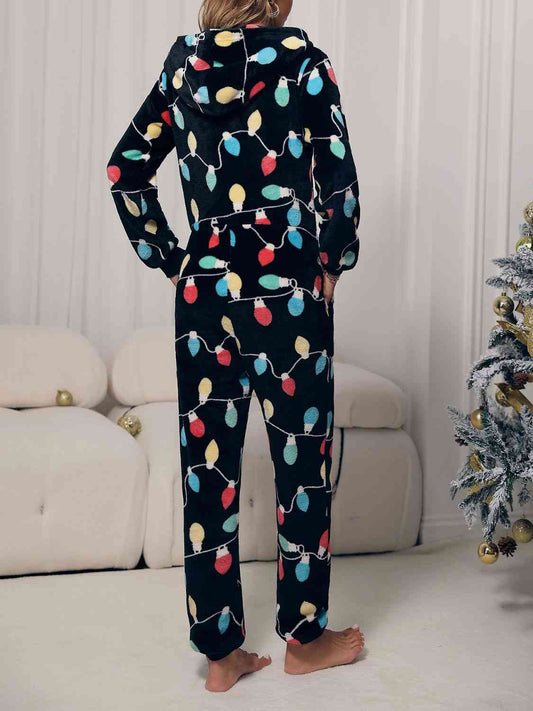 Zip Front Hooded Lounge Jumpsuit with Pockets
