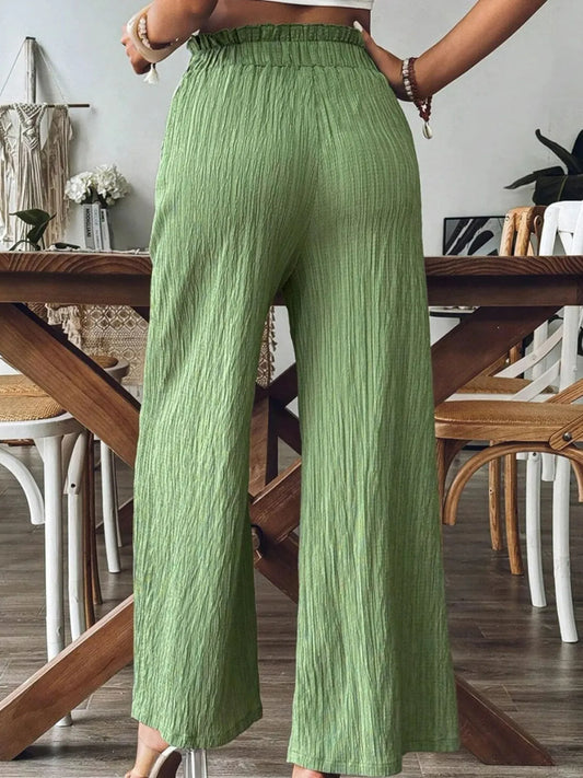 RISEN High Rise Crop Wide Leg Jeans with Wide Band Detail