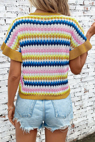 Striped Round Neck Short Sleeve Sweater
