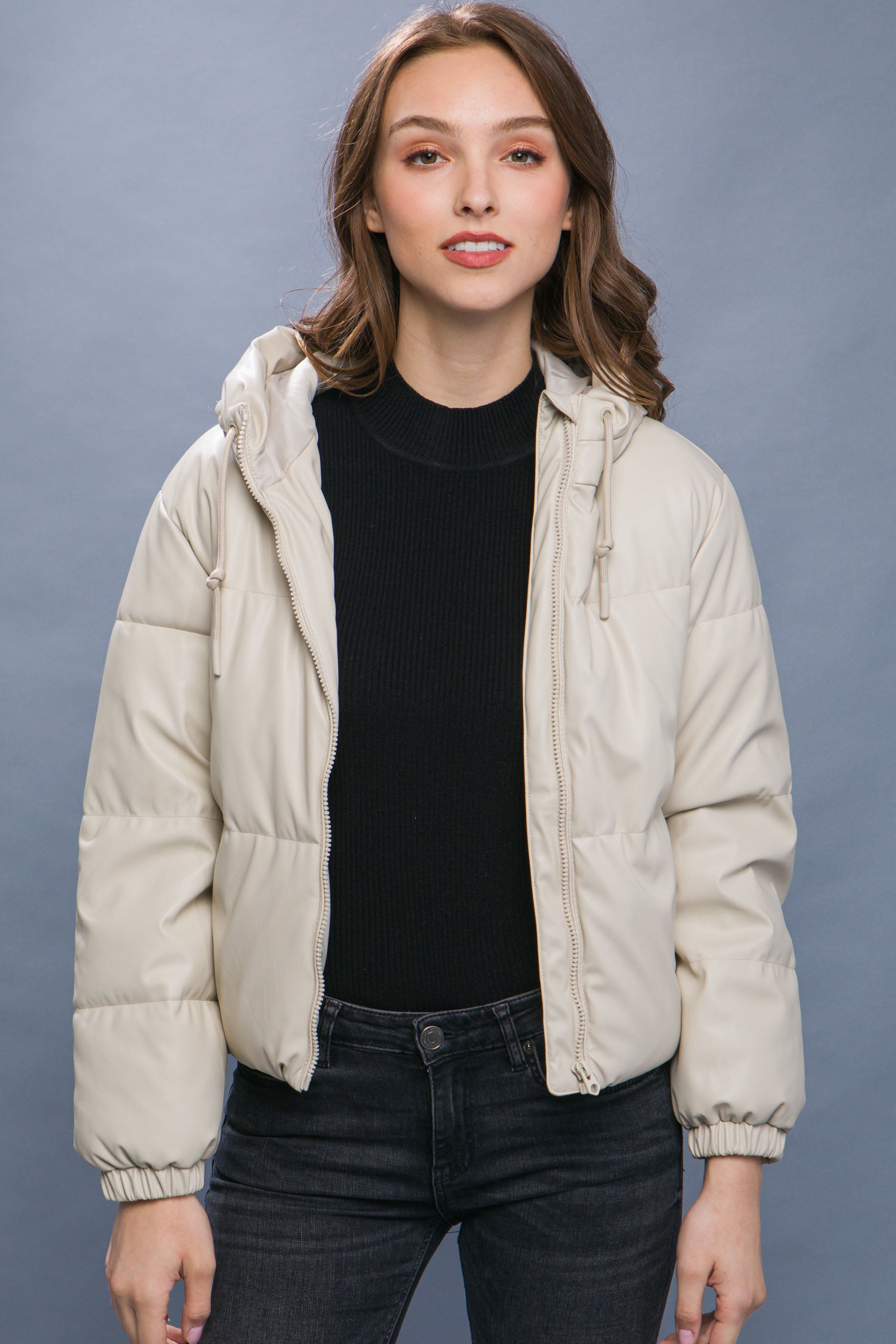 Why Choose the PU Faux Leather Zipper Hooded Puffer Jacket?