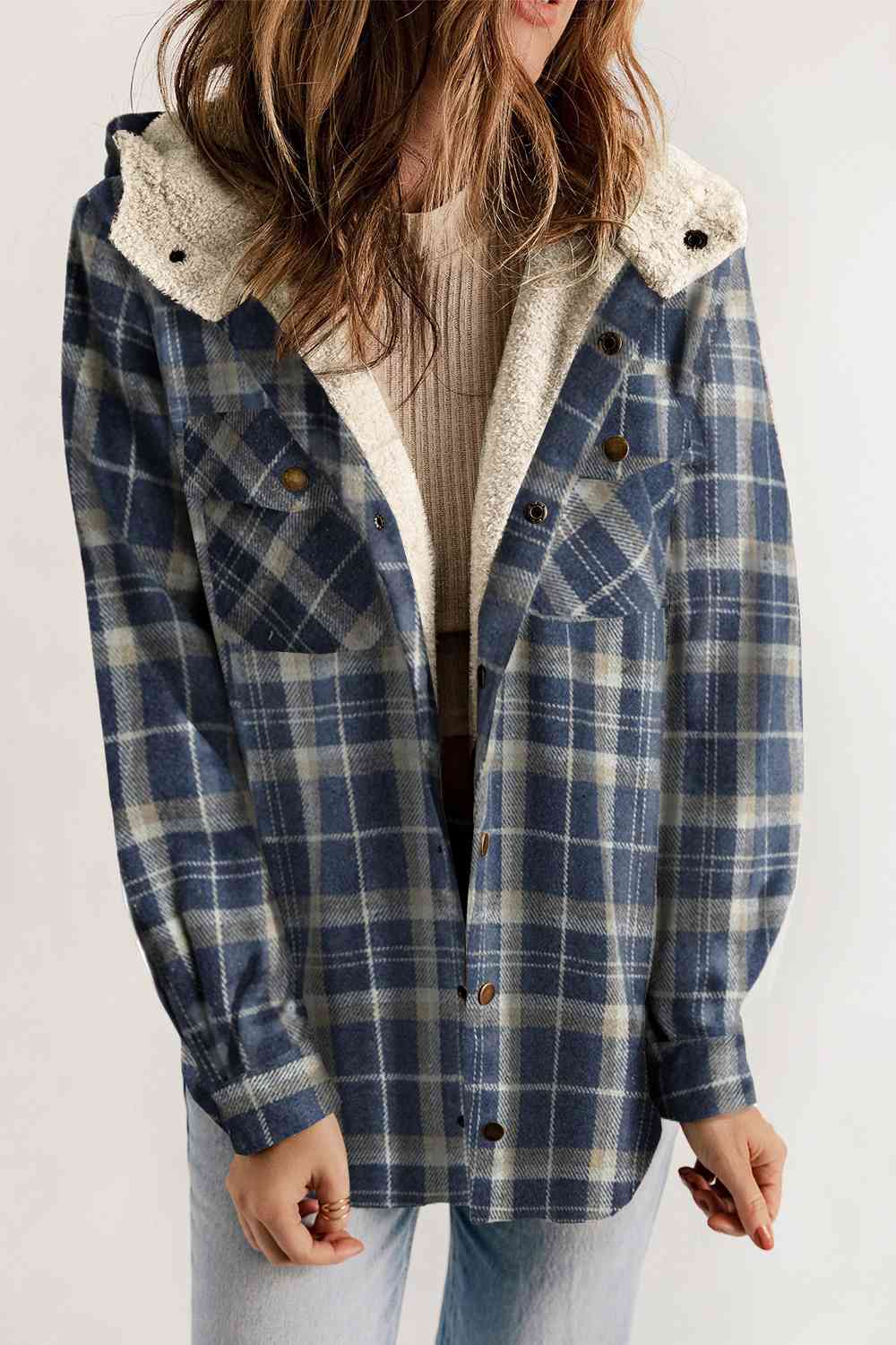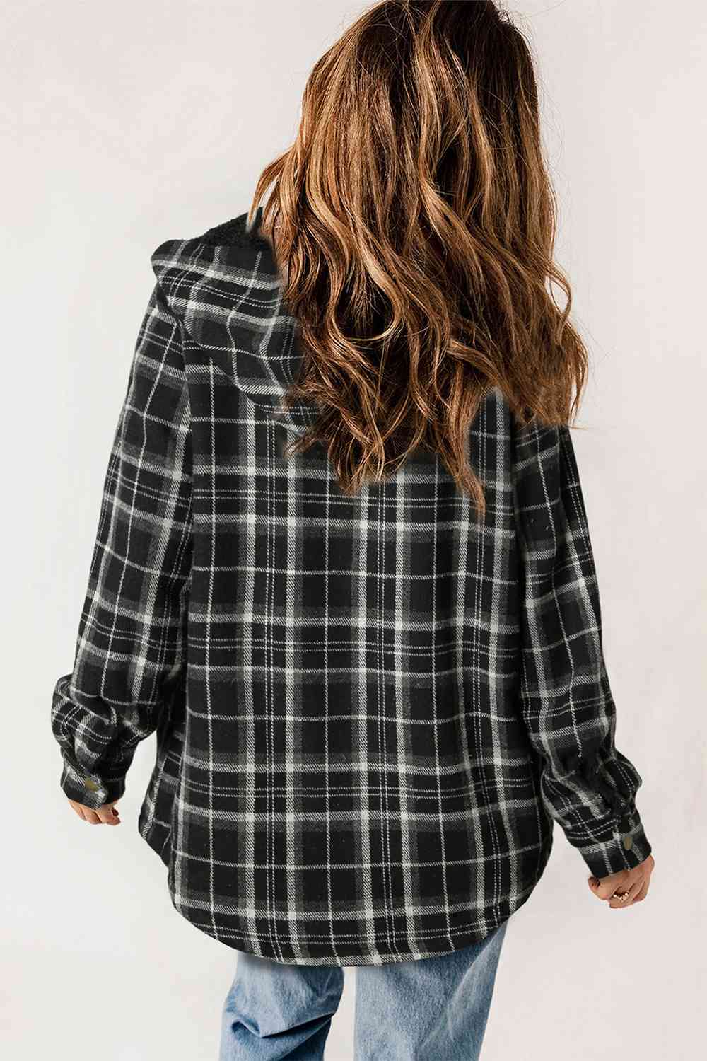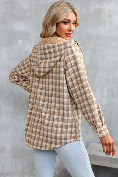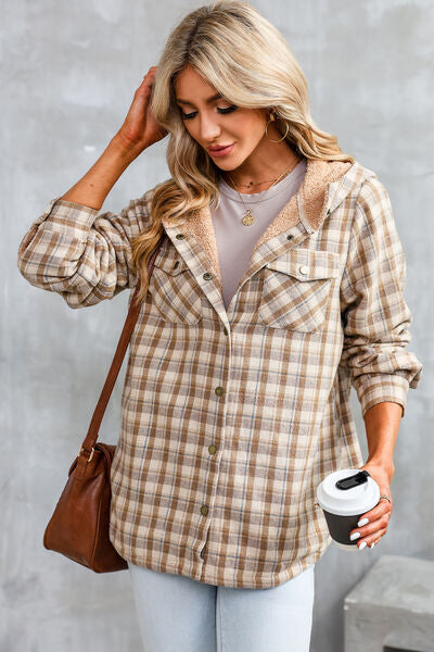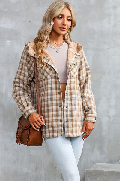 Plaid Snap Down Hooded Jacket