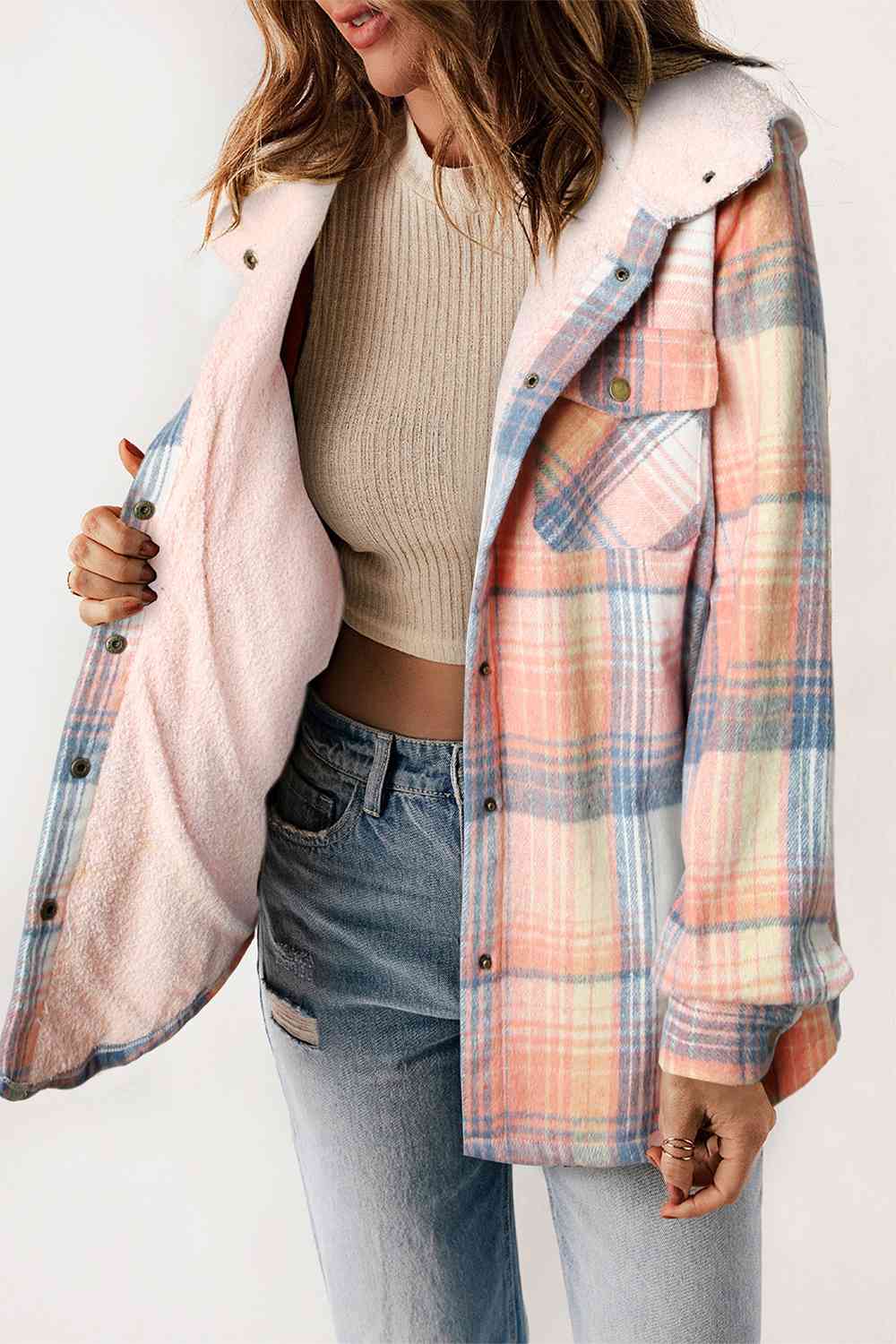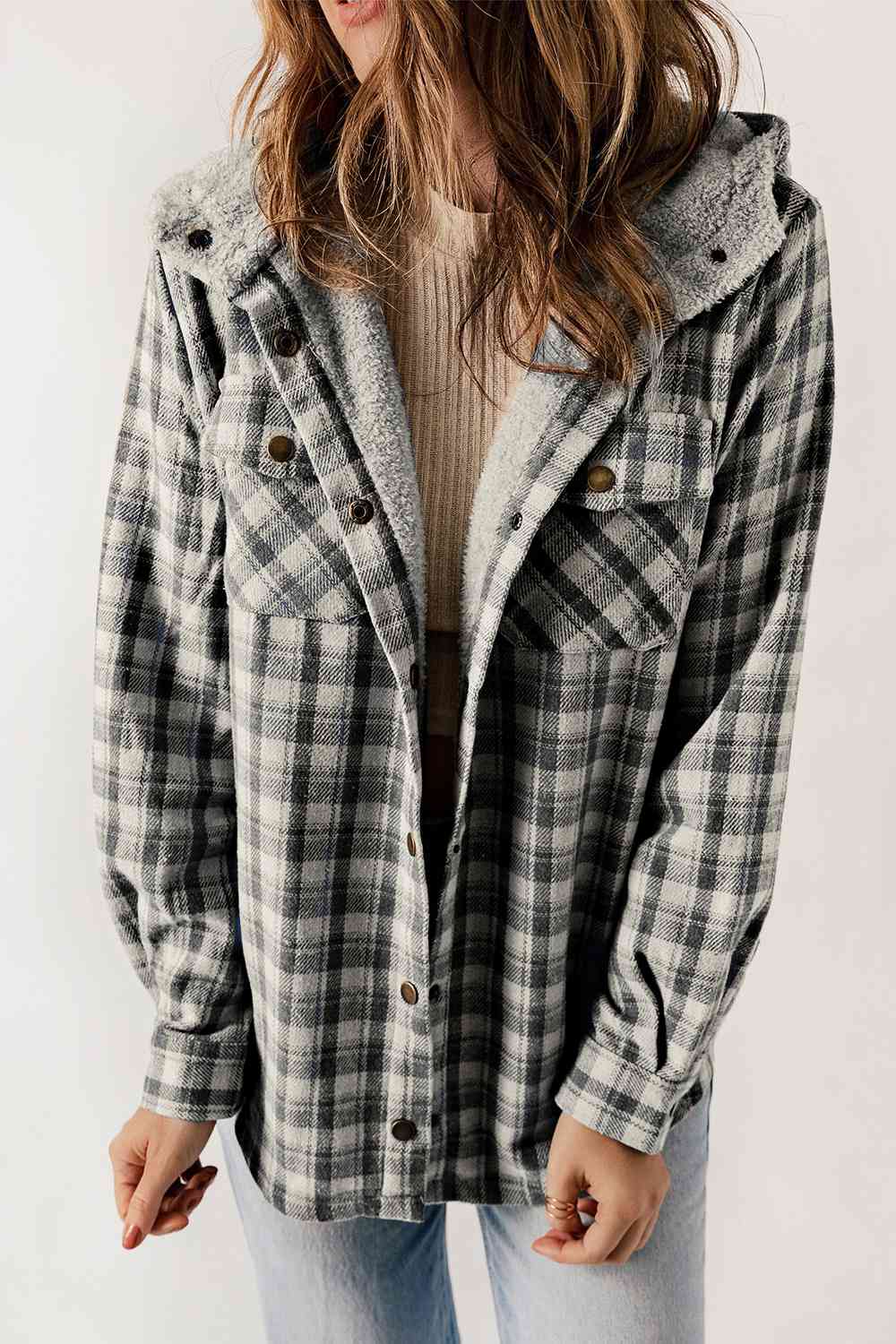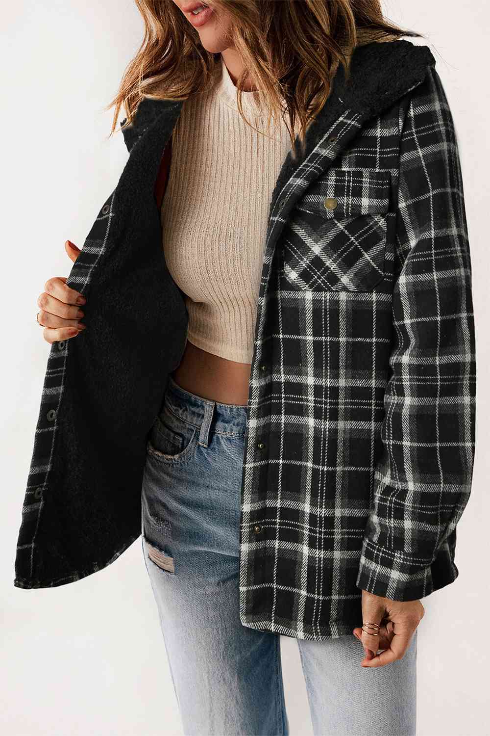 Plaid Snap Down Hooded Jacket